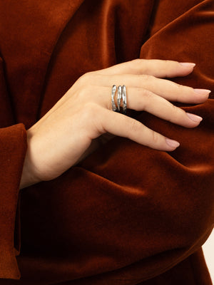 A Talisman Diamond Gyűrű a visszafogott elegancia esszenciája. Tökéletes választás mindennapokra és különleges alkalmakra egyaránt. A gyűrűt tíz, véletlenszerűen elhelyezett, káprázatos kis gyémánt díszíti, melyek finoman játszanak a fénnyel minden mozdulatnál.